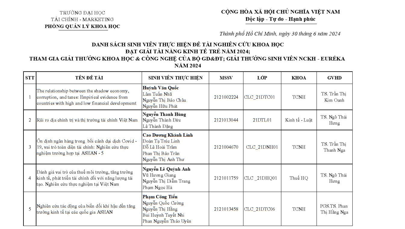 Nổi bậtAnnouncement: Recognition of Outstanding Students Awarded the 2024 Young Economic Talent Award