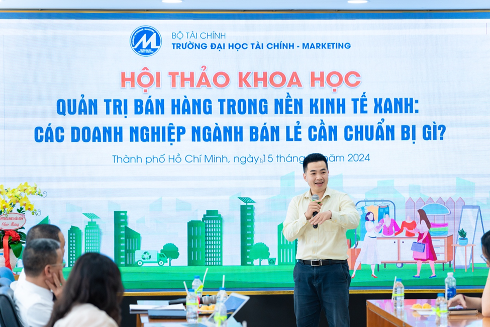 On the morning of November 15, 2024, the scientific seminar "Sales Management in a Green Economy: What Should Retail Businesses Prepare For?" was successfully held at A302 - District 7, drawing many students, faculty members, and experts from various fields.