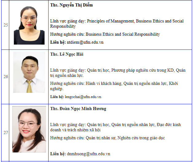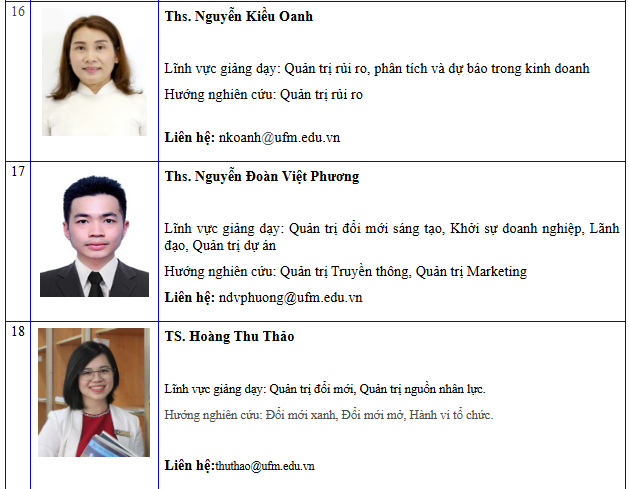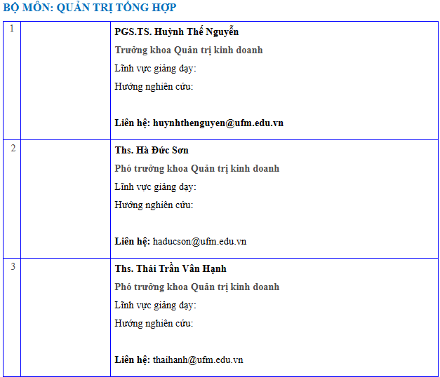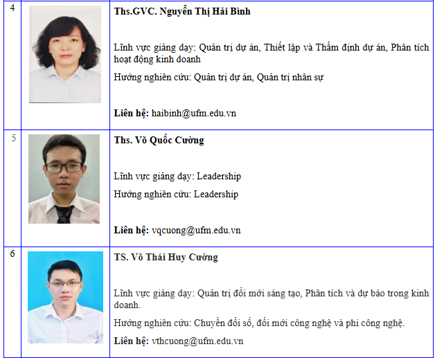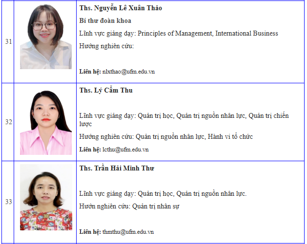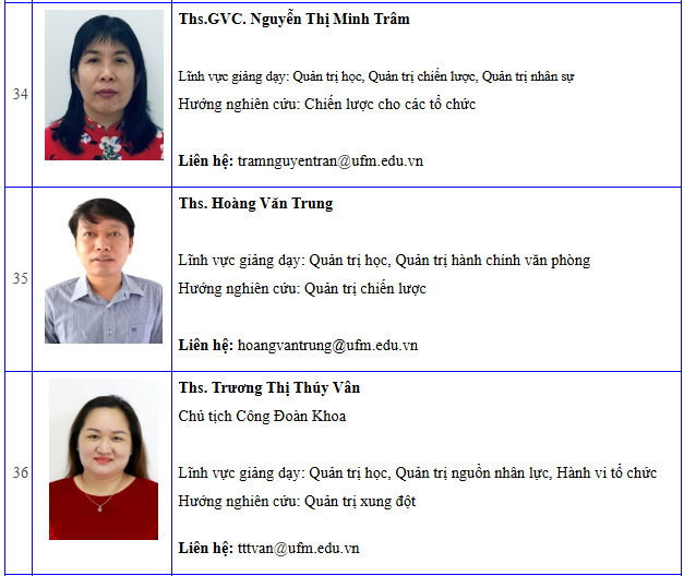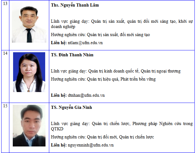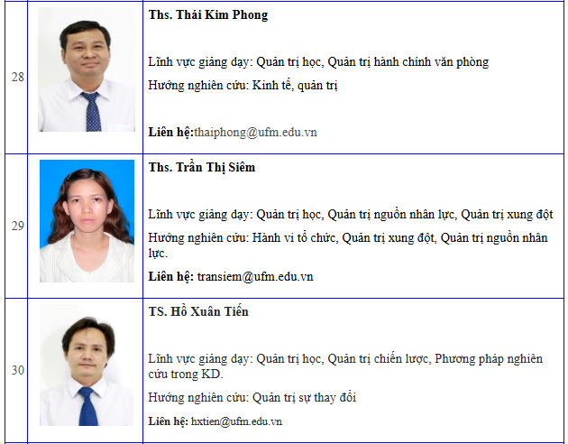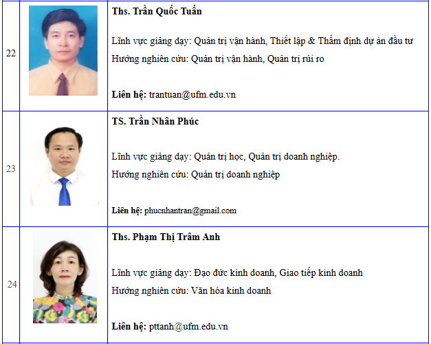 Danh sách giảng viên khoa Quản trị kinh doanh - Cập nhật đến 06/2024
